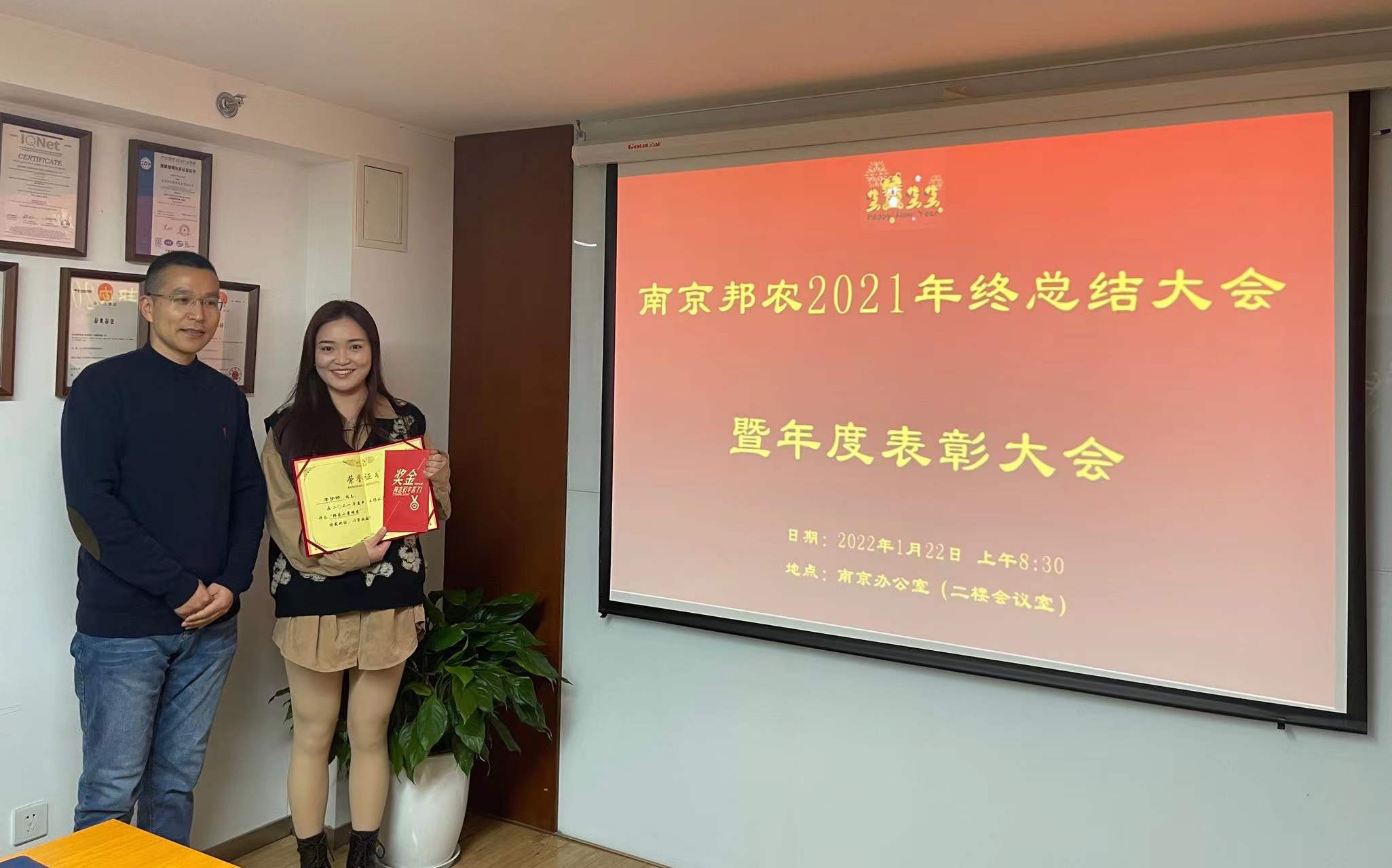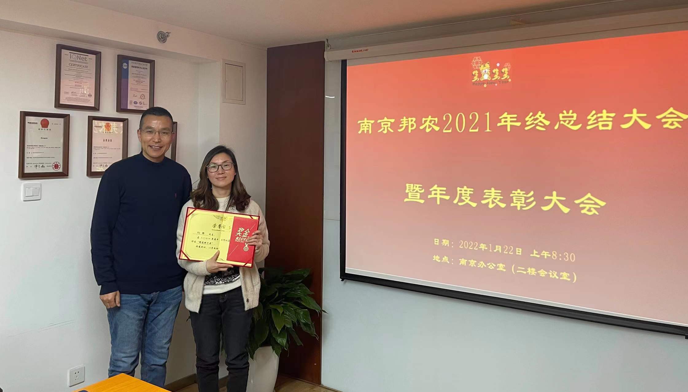 2022年1月22日我司在南京總部召開了《2021年度表彰大會》