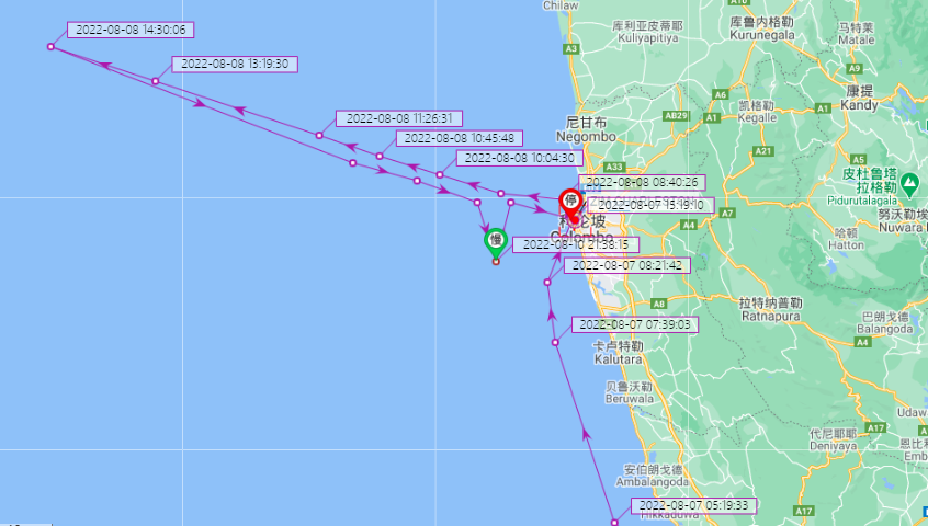 根據(jù)AIS船舶定位顯示,截至8月17日,該船仍在科倫坡港處于錨泊狀態(tài)。原船期預(yù)計(jì)19日抵達(dá)那瓦希瓦港,目前來(lái)看船期已嚴(yán)重延誤。