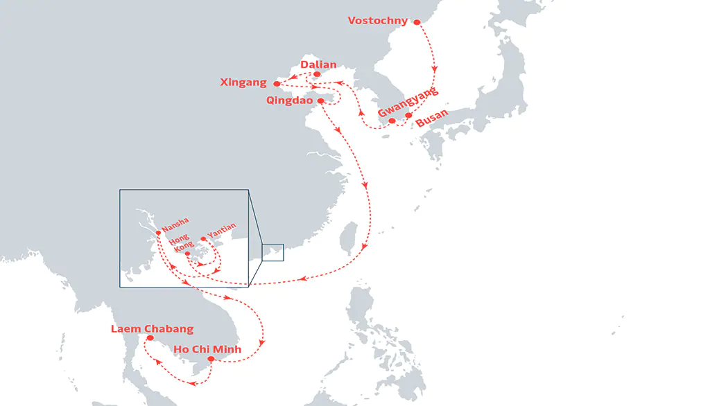 該輪曾于7月10-1日靠泊天津新港,7月19-20日靠泊上海港,7月22-23日靠泊廈門(mén)港,7月24-25日靠泊香港港,7月25-26日靠泊深圳蛇口港,然后駛往新加坡、科倫坡、那瓦希瓦、皮帕瓦沃港。涉及ANL、CMA CGM、CNC、COSCO SHIPPING、EVERGREEN、GOLD STAR LINE、HAMBURG SüD、KAMBARA KISEN、OOCL、PIL、ZIM等船公司共艙。