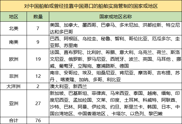 76個國家或地區(qū)對中國船舶實施管制