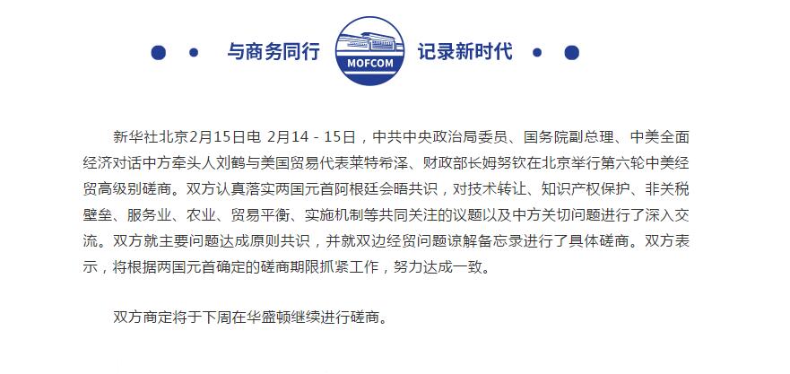 中美經(jīng)貿(mào)高級(jí)別磋商結(jié)束