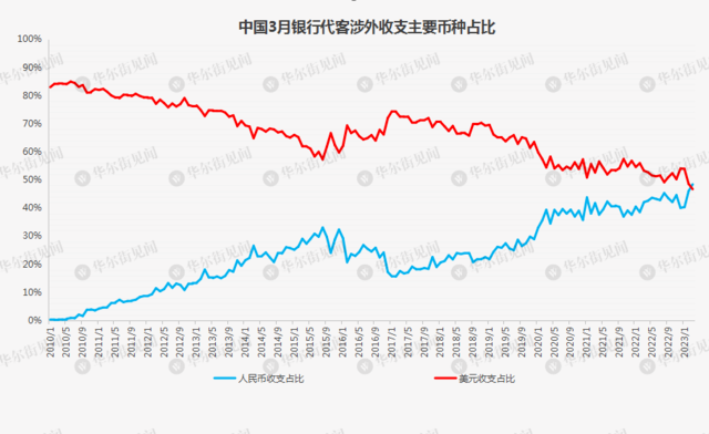 數(shù)據(jù)顯示,美元在同一時(shí)期的占比從83%下降至47%。該比例是基于所有交易計(jì)算而來(lái),包括通過(guò)中國(guó)內(nèi)地與香港資本市場(chǎng)開(kāi)展的證券交易等。