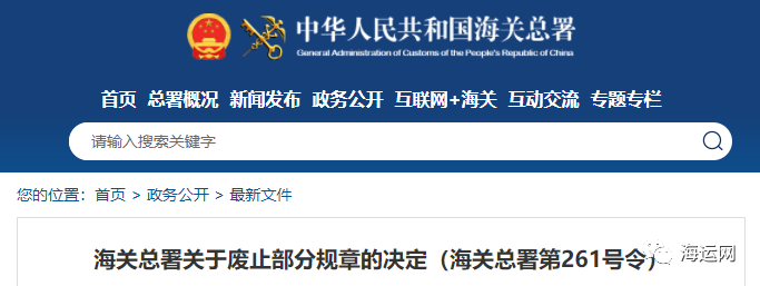 (2023年3月7日海關(guān)總署令第261號(hào)公布 自2023年3月7日起施行)