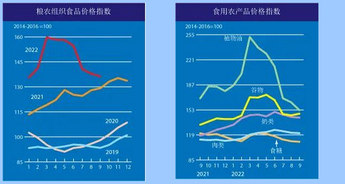 9月食品價(jià)格指數(shù)的跌幅主要由國際植物油價(jià)格大幅下跌拉動(dòng),同時(shí)食糖、肉類和乳制品價(jià)格溫和走低,完全抵消了谷物價(jià)格指數(shù)反彈的影響。
