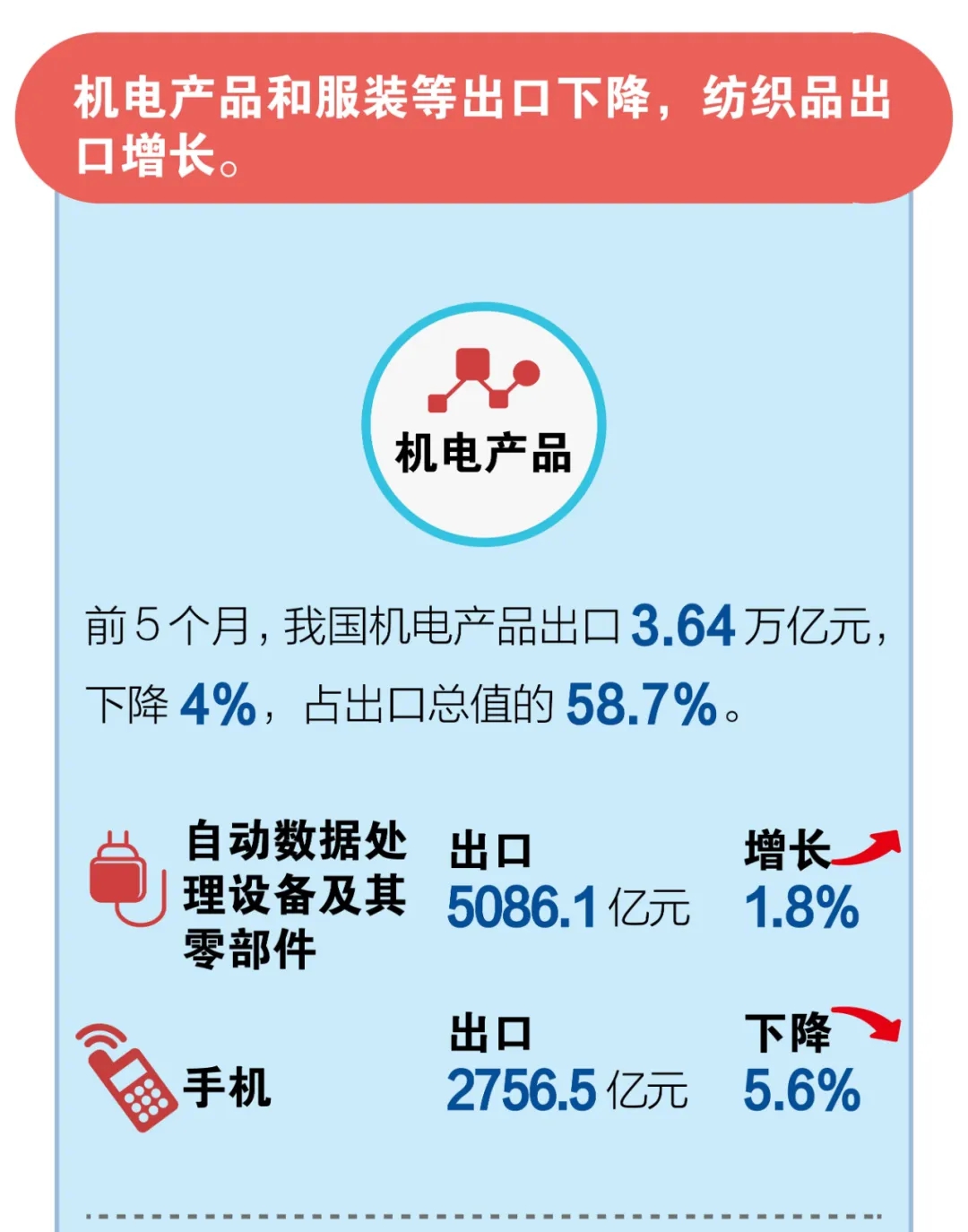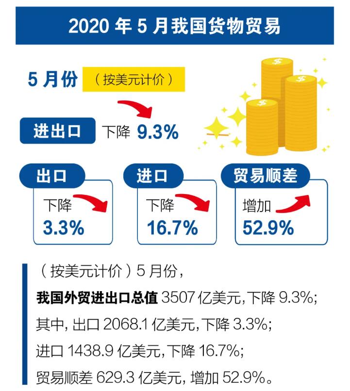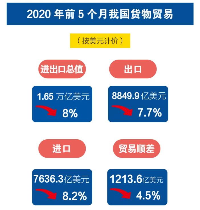 前5個(gè)月我國(guó)外貿(mào)進(jìn)出口情況;5月份出口增長(zhǎng)1.4%