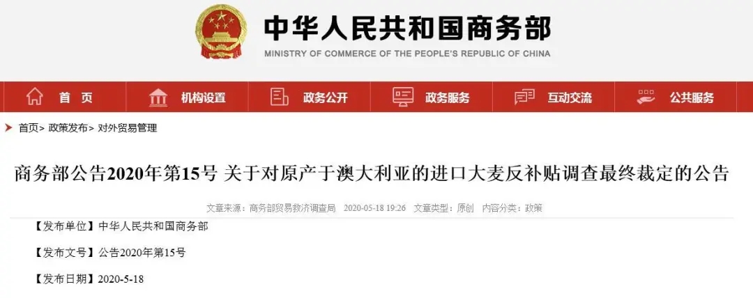 早在2018年10月9日,中國國際商會就向商務(wù)部提交了澳大利亞大麥反傾銷調(diào)查申請,給出的理由是,澳大利亞大麥以低于正常價向中國大幅度出口銷售,對國內(nèi)產(chǎn)業(yè)造成了嚴重損害。