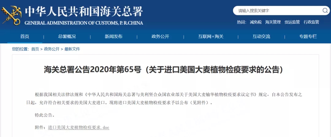 五、征收反傾銷稅的期限 對原產(chǎn)于澳大利亞的進口大麥征收反傾銷稅的實施期限自2020年5月19日起5年。