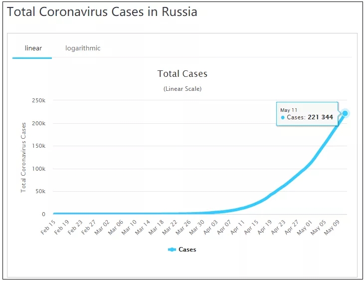 俄羅斯衛(wèi)星通訊社5月11日?qǐng)?bào)道稱,俄羅斯新冠病毒疫情防控指揮部當(dāng)天表示,在過(guò)去24小時(shí)內(nèi),俄羅斯新增11656例新冠肺炎確診病例,累計(jì)確診221344例。