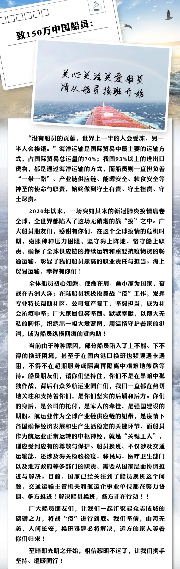 “海員畢竟也是國際貿易中必不可缺少的一環(huán)“,這句話也說出來各海員的心聲