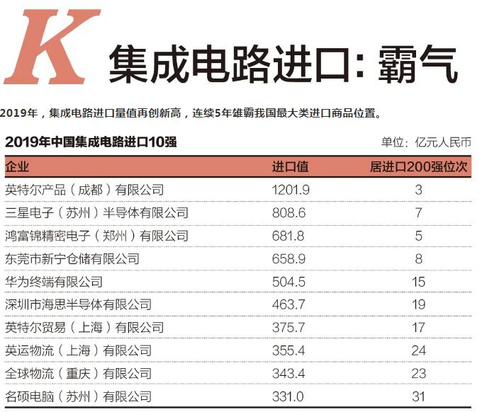 據(jù)海關(guān)統(tǒng)計(jì),2019年,我國集成電路進(jìn)口量值再創(chuàng)新高, 累計(jì)進(jìn)口4451.3億個(gè),增加6.6%;價(jià)值2.11萬億元,增長2.4%, 連續(xù)5年雄霸我國最大類進(jìn)口商品位置。巨大的國內(nèi)市場需求, 造就了我國規(guī)模龐大的集成電路進(jìn)口企業(yè)集群。2019年,我國集成電路進(jìn)口10強(qiáng)企業(yè)全部進(jìn)入外貿(mào)進(jìn)口200強(qiáng)總榜單前50位, 更有4家集成電路進(jìn)口企業(yè)挺進(jìn)外貿(mào)進(jìn)口企業(yè)前10強(qiáng)。2019年,我國集成電路進(jìn)口值占全球的37.2%,居全球第 一。即便是這樣霸氣的國際大買家,在國際經(jīng)貿(mào)關(guān)系發(fā)生變動(dòng)之際也難免經(jīng)歷動(dòng)蕩與挑戰(zhàn)。2019年我國集成電路進(jìn)口行業(yè)的赫芬達(dá)爾-赫希曼指數(shù)(HHI)為118.8,較2018年下降39.3個(gè)百分 點(diǎn),行業(yè)競爭更加激烈。